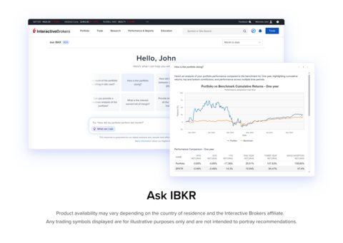 GREENWICH, Conn.--(BUSINESS WIRE)--Interactive Brokers (Nasdaq: IBKR), an automated global electronic broker, today announced the launch of Ask IBKR, an AI-powered tool that delivers instant portfolio insights through natural language queries.